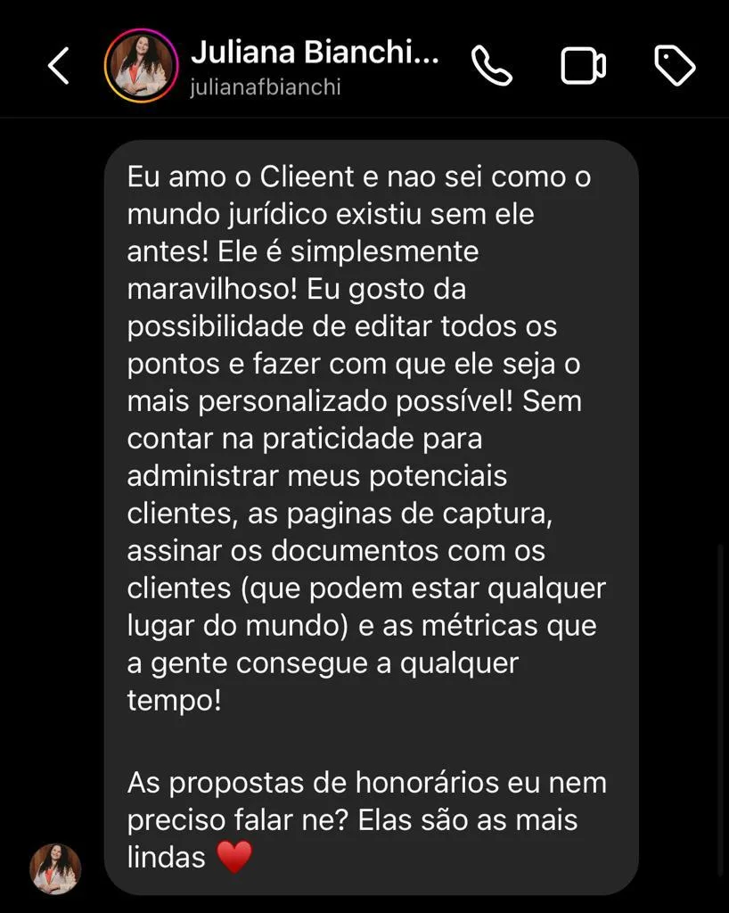 O clieent® CRM ajuda você a gerenciar todo o ciclo comercial. Facilite a comunicação entre os times de pré-vendas e advogados, crie páginas de captura personalizadas, colete dados de clientes com rapidez, envie propostas de honorários e obtenha assinaturas digitais de forma rápida e segura.